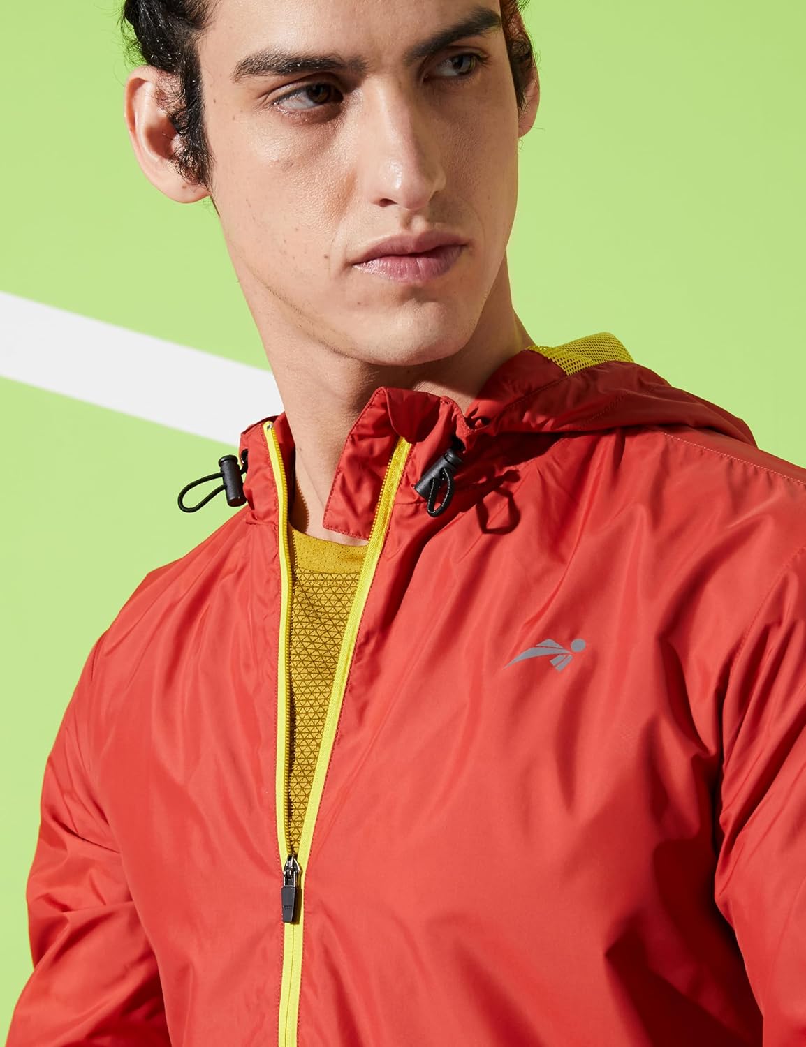 - Solid hooded jacket with full front & pockets zipper with reflective logo at chest